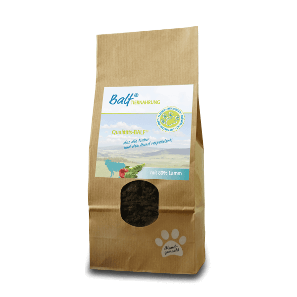 Du möchtest deinen Hund mit natürlichen und gesunden Zutaten füttern? Dann bist du bei BALF® Lamm Obst/Gemüse genau richtig. Hier sind keine Zusatzstoffe enthalten. Du bekommst, was du liest: 800 g luftgetrocknetes Lamm und 200 g Gemüse sowie Obst. Die Bezeichnung BALF® steht für Biologisch, Artgerecht, Luftgetrocknet, Fleisch. Geschmackliches Hochgefühl und natürliche Ernährung schließen sich nicht aus. Wir beweisen es dir mit unserem Qualitätsprodukt BALF® Lamm Obst/Gemüse.